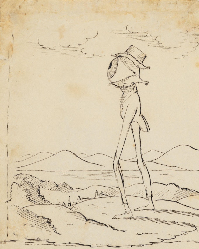 Christopher Pearse Cranch, illustration to Emerson’s Nature captioned “Standing on the bare ground, – my head bathed by the blithe air, & uplifted into infinite space, – all mean egotism vanished. I become a Transparent Eyeball”, ca. 1837–39.