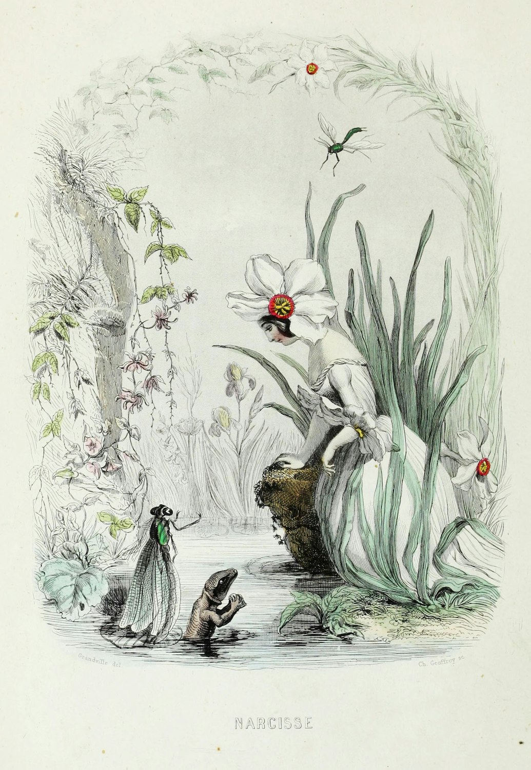 « Narcissus » in J. J. Grandville’s Illustrations from The Flowers Personified (1847).